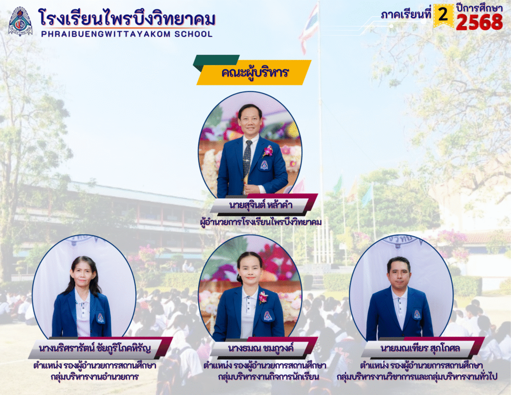 นายเอกอรุณ ประอาง ตำแหน่ง ครู วิทยฐานะครูชำนาญการ | นางนิภา พิศลืม ตำแหน่ง ครู วิทยฐานะครูชำนาญพิเศษ | นายมนตรี มณีวงษ์ ตำแหน่ง ครู วิทยฐานะครูเชี่ยวชาญ | นายสักกรินทร์ แสวงสุนทะริ ตำแหน่ง ครู วิทยฐานะครูชำนาญการ | นางสาวชลทกาณต์ ชิณพันธ์ ตำแหน่ง ครู | นางสาวกรรณิการ์ บุญร่วม ตำแหน่ง ครูจ้างตามภารกิจ |