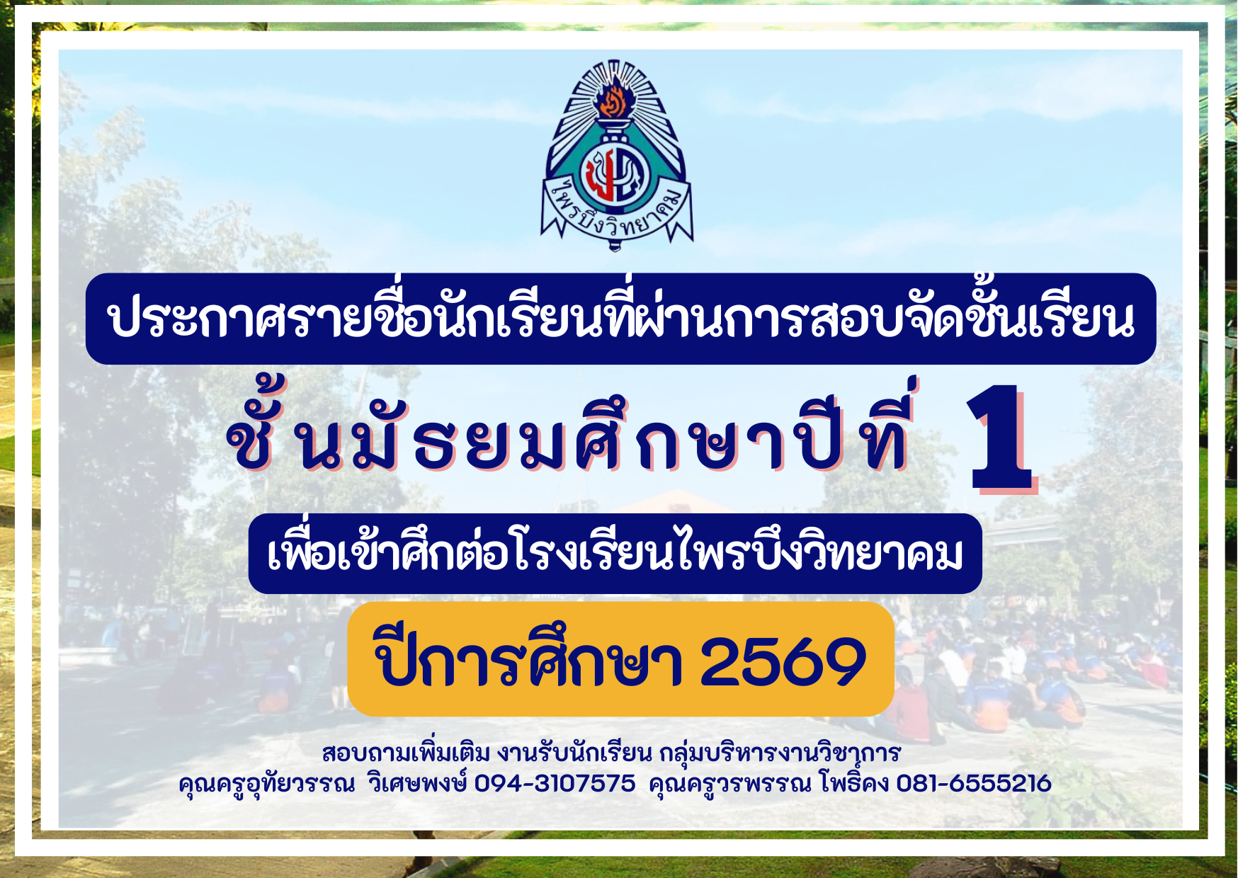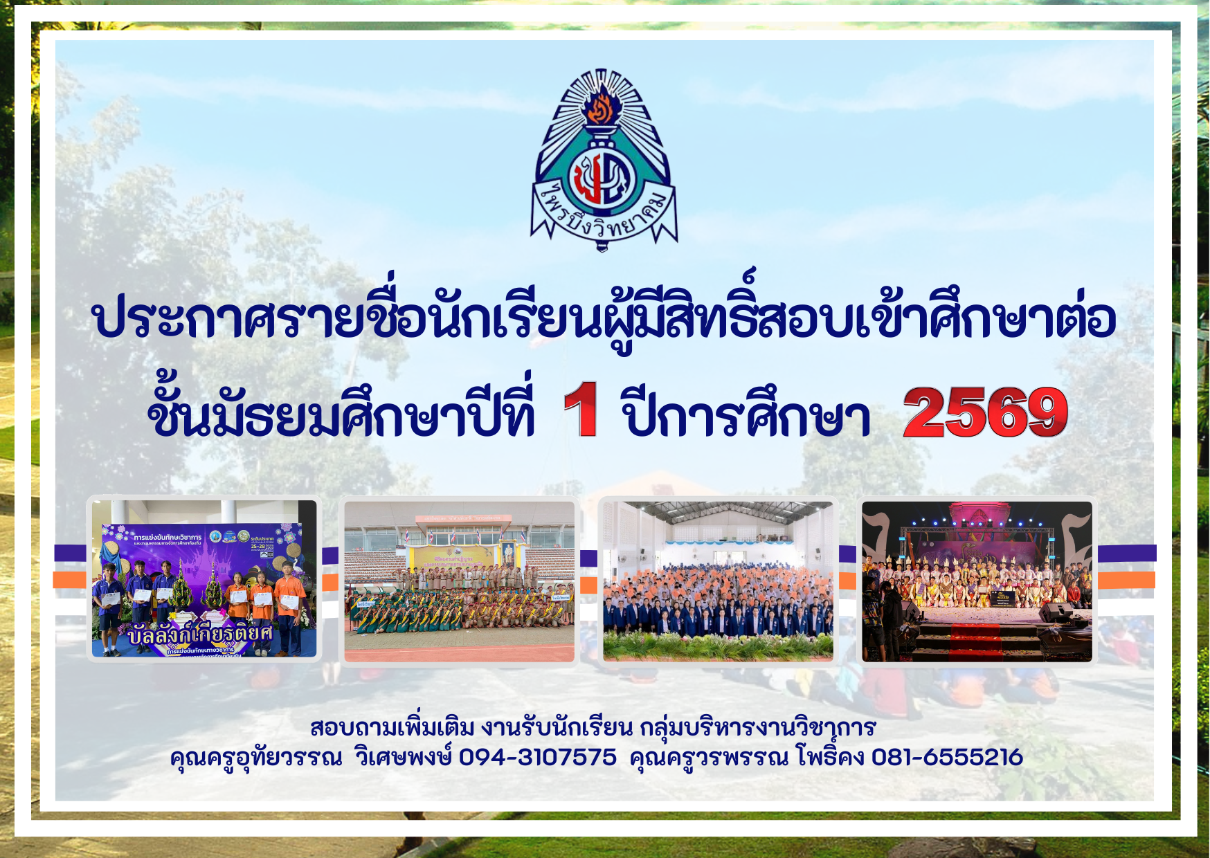 ขั้นตอนการมอบตัวและรายงานตัวนักเรียนใหม่ ปีการศึกษา 2569